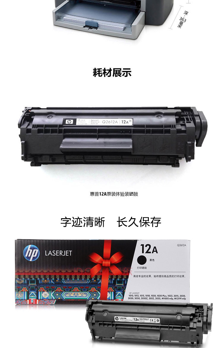 惠普(HP) M1005 黑白激光打印機多功能一體機
